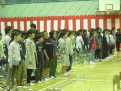 体育館の準備も6年生の活躍で完了しました。入学式で披露する校歌の練習もでき、明日の1年生を迎え入れる準備は完璧です。あとは、かわいい1年生を出迎えるだけです。お天気が少し心配ですが、6年生ががんばってくれたので、きっとよい入学式になると思います。元気な1年生がやってくるのを楽しみに待っています。