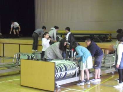 早速1時間目に6年生は、入学式の会場となった体育館の片付けです。最上級生として、学校を支えていくために、いろいろな場面で活躍が求められます。1年生のお世話も含めて、6年生は朝からとても忙しくがんばってくれて、最高学年としての自覚が芽生えてきているようです。