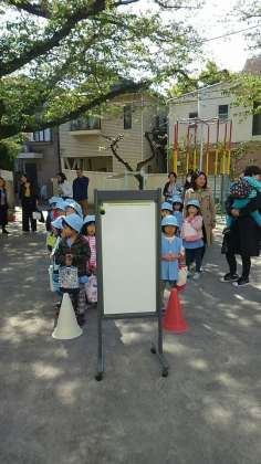 八幡山幼稚園では、新年度か始まりました。年長組か元気に登園してきました。