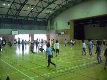 午後の授業、4年生は体育館で、学年合同でのドッジボール大会です。男女に分かれてのゲームで盛り上がっていました。楽しそうな笑い声が響き渡り、新学期のよいスタートが切れました。