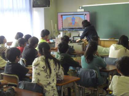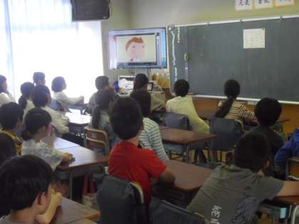 4年生以上は、毎週火曜日と金曜日にモジュールの授業です。今日は木曜日ですが、明日は学習習得確認調査があるので、今日2回目のモジュール授業を行いました。高学年は、外国語活動。今朝もDVDを見ながら、楽しく英語の勉強です。先生の問いかけに、英語で答える場面も見られ、みんな意欲的に取り組んでいます。