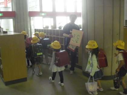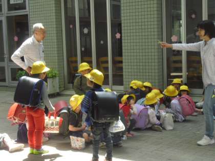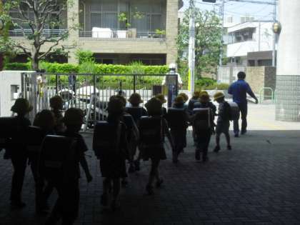 今日も4時間の授業を終えて、1年生がコースごとにまとまって下校します。4日目となると、どのコースも集合がスムーズになって、しっかり並んで歩くこともできるようになりました。