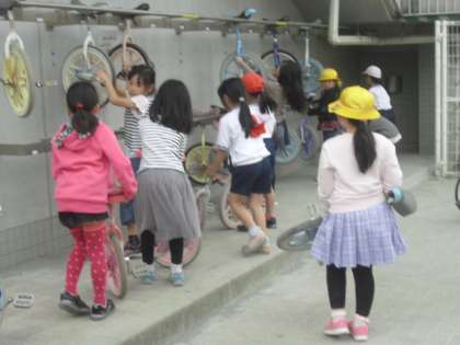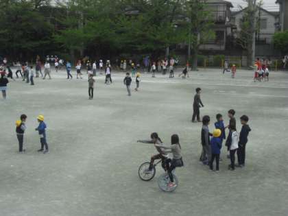 少し曇り空のお天気ですが、中休みは元気に外遊びをする子どもたちでいっぱいです。ボール遊びをしたり、一輪車や遊具で遊んだりする低学年の子どもたちがとても楽しそうです。八幡山小の校庭はとても広いですので、みんなで走り回っても大丈夫です。遊び終わったら片付けもきちんとして、3時間目の授業もがんばりましょう。