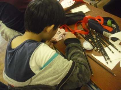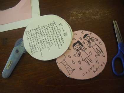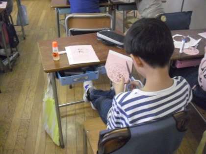 6年生の教室では、来週行われる「1年生を迎える会」の準備として、1年生にプレゼントするメダル作りをしました。1年生に1日も早く校歌を覚えてもらえるように、手書きの校歌が書かれたメダルです。一人一人が思いを込めて作ったプレゼントに、1年生の喜ぶ顔が思い浮かびますね。