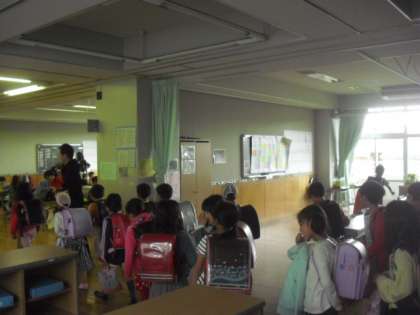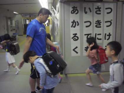 他の学年も、土曜授業を終えて下校です。新学期の最初の1週間。どの学年もよく頑張っていました。新しい担任の先生とも仲良くなって、笑顔でハイタッチする姿も見られます。また来週も、先生やお友達と楽しく過ごしましょう。さようなら。