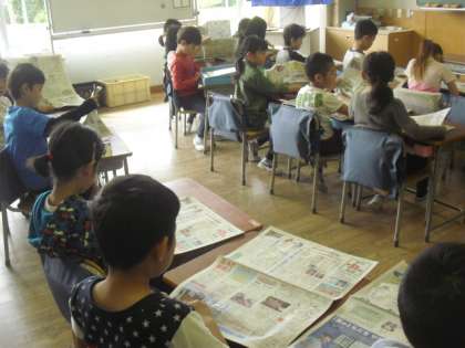低学年の2年生や3年生の教室でも、子どもたちはしっかり新聞と向き合って黙々と読んでいました。新聞をめくる姿がとても慣れた様子で、絵や写真だけでなく、きちんと活字も追っていました。次回は、5月21日(月)に実施します。