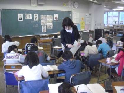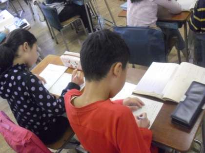 4年1組と2年2組では、今日から講師の坂口先生による教科「日本語」の授業が始まりました。4年生は俳句の視写をしました。難しい漢字も、教科書をよく見てていねいに書き写します。一文字一文字、言葉を大事にしながら、言葉の意味を考えて、繰り返し朗誦しました。2年生は学習ファイルを作って、資料したプリントを整理しました。日本語の言葉の響きやリズムを味わい、これからも学びを深めていってほしいです。