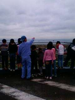 埋め立て地を車窓見学、詳しい説明にかなり納得。バスを降りて見える羽田や千葉の景色に興奮気味。最終処分場の場所も見ました。