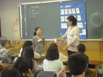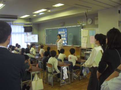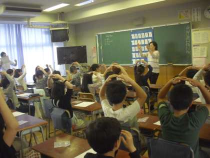 豊田先生のテンポのよい英語での語りかけに、子どもたちは自然と英語を聞く姿勢が身についているようでした。英語の読み聞きを教える前に、子どもたちに英語の音声をしっかりインプットすることが大事であることから、前回教えていただいた「音素体操」を、子どもたちはノリノリで取り組んでいました。数回の指導で子どもたちが英語の音に親しんでいる姿を見て、コミュニケーションの手段として、子どもたちが英語を気軽に使えるようにしていくために、今後も先生方は研鑽を積んでいくことになります。