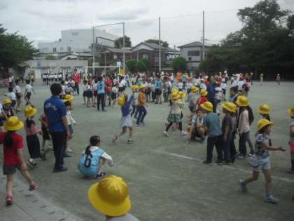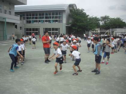 今日も気持ちのよい青空の下で、中休みは「金スポ」。クラス単位での長なわ跳びに挑戦です。各クラスで係や中心になって進める子がリードし、クラスの結束を深めようと頑張っていました。1年生も全員参加して、笑顔で楽しそうに取り組む姿が見られました。