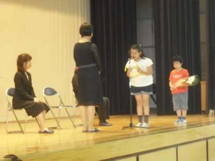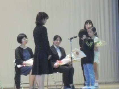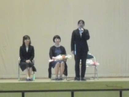 離任された先生方へ代表児童がお手紙を渡し、花束を贈呈しました。それぞれの先生方からは、近況の報告と八幡山小での思い出などを話していただきました。楽しかったことやうれしかったことなど、八幡山小で子どもたちと過ごした思い出は尽きることなく、先生方の記憶に深く刻まれていることがうかがえました。