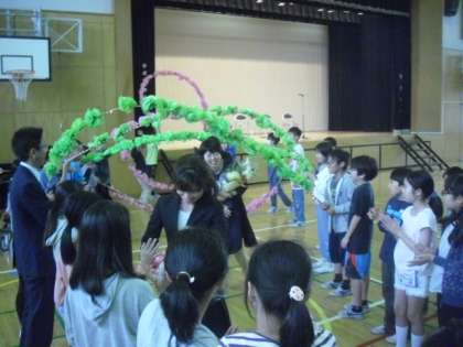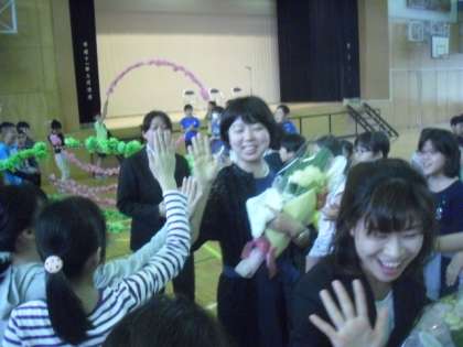 お見送りは、子どもたちがつくった花道を通って、先生方が退場します。それぞれが思い思いに声をかけ合って、子どもたちも先生方も満面の笑顔でした。