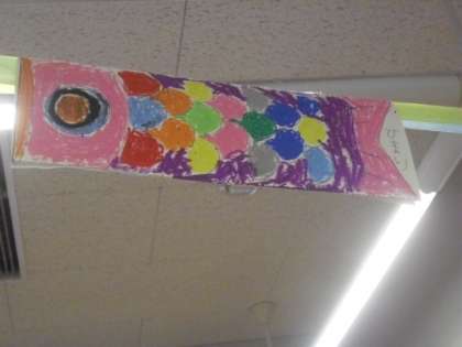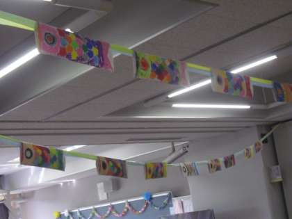 1年生が図工の時間に作ったこいのぼりが、教室に飾られました。