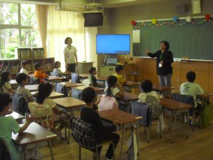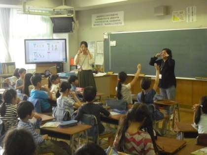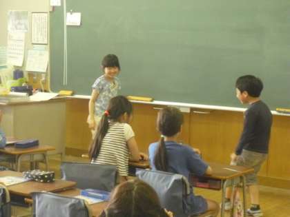 今日もALTによる外国語活動が各教室で行われました。3年生では、子どもたち同士であいさつの練習をしていました。アグネス先生と担任の先生のお手本を見て、子どもたちは上手に発表することができました。さらに今日は、1年生の教室でも外国語の授業がスタートしました。1年生も、まずは英語に慣れることが肝心です。先生の英語をよく聞いて、身振りなどはよく見てまねて、楽しくマスターしていきましょうね。