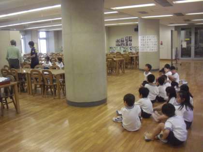 ランチルームでは、1年生と4年生で心臓検診が行われました。1年生はいろいろな検診を受けていますが、待ち方がとても上手になってきていて、静かに順番を守って座っていました。1学期の健康診断も残りわずかです。