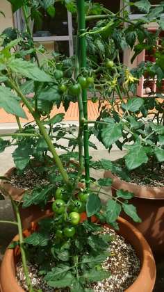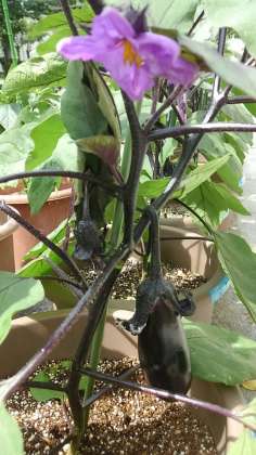 年少組はミニトマト、年長組は茄子やピーマン、オクラ、インゲンを育てています。立派に実がなり始めました。