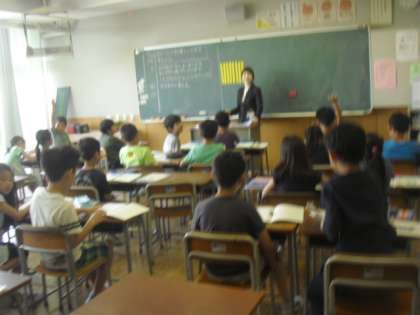 今日の2校時、算数少人数指導の八木橋教諭は、初任者研修の一環として研究授業を行いました。3年生の算数『わり算』の単元で、「80÷4」の計算の仕方について、考え方を発表する授業でした。今日の課題からめあてを確認し、子どもたちの考えをじっくり引き出して、発表まで落ち着いて授業を展開することができました。子どもたちも一生懸命に授業に臨む姿が見られ、活気のある1時間になりました。授業後の協議会では、参観した先生方から指導をいただき、激励やお褒めの言葉もいただきました。今後も学校全体で、八木橋教諭をサポートしていきたいと思います。