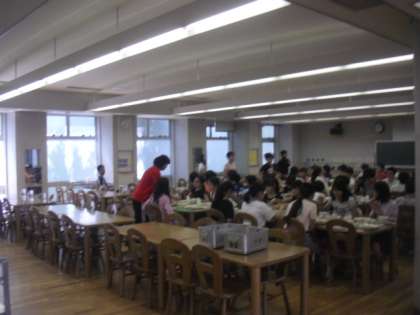 今日から4日間、6年生はランチルームでの給食です。学年全員で楽しく交流しての会食です。いつもと違った場所と雰囲気で、6年生の食欲もさらに旺盛になったようです。