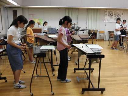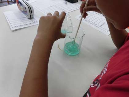 室内で活動するクラブも活気があります。器楽クラブは、課題曲の練習に、パートごと集中して取り組んでいました。図書室ではパソコンクラブが、また理科室では科学クラブが、それぞれの課題や実験に取り組み、充実した1時間を過ごしていました。