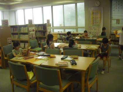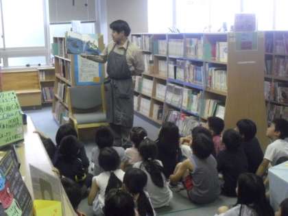 2組の3校時目は、図書室での読書の時間です。まずは、図書館司書の先生に読みきかせをしてもらいました。読みきかせが大好きな子どもたち。お話の世界に引き込まれ、それぞれの子どもたちから自然と感想がわき出てきます。お話の後も、自分の興味のある本を探し、1時間どっぷりと本の世界に浸っていました。