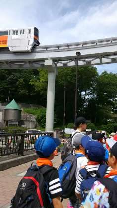 2年生は、多摩動物公園に到着しました。モノレールの下をくぐって、入口に向かいました。