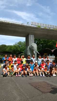 多摩動物公園の入口で、集合写真を撮りました。
