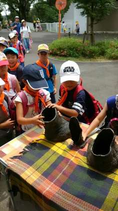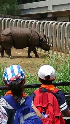 インドサイを見学しました。凄い迫力に、驚きました。足の模型や本物の糞も触ってきました。