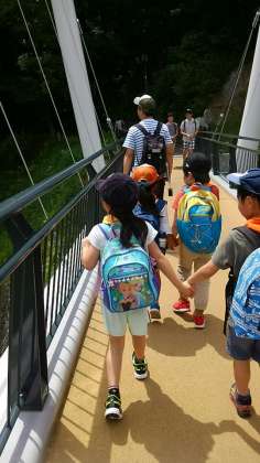にじの橋を渡って、猿山を見学しました。「猿山で遊びたーい。」と興奮していました。