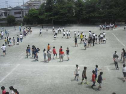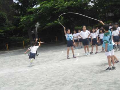 金曜日の中休みは、「金スポ」です。今日もクラス単位で長縄跳びの練習に励みました。1年生も、担任の先生や運動委員のお兄さんやお姉さんの手助けを受けながら、がんばっていました。どの学年も、みんなで団結して練習を続けていきます。