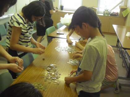 今日でユニセフ募金活動は終了しました。放課後、代表委員会の児童が集まり、募金の集計をしました。みんなで協力し、それぞれの硬貨に分けて数え、総額が明らかになりました。結果は、月曜日の全校朝会で発表されます。たくさんのみなさんの善意に感謝します。