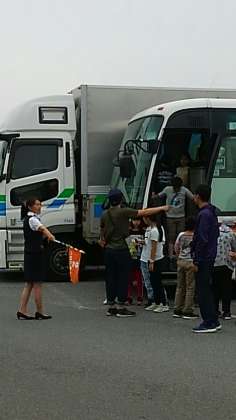 三芳PA で、1回目のトイレ休憩です。皆元気そうです。