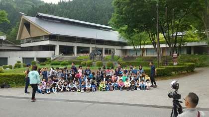 川場村のふじやまビレッジに到着しました。学年写真を撮りました。