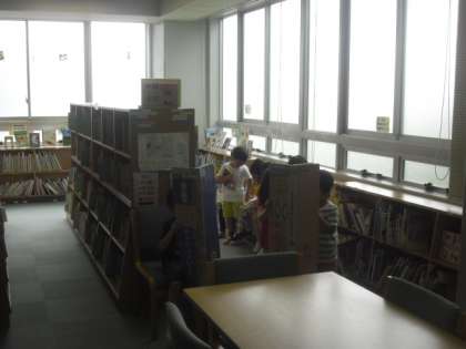 近くの南八幡山保育園の園児たちが、八幡山小学校の図書室にやってきました。たくさんの本があって、子どもたちは目を丸くしていました。特に大きな絵本は人気で、何人かの子どもたちで囲んでいました。土曜日の午前中も開室していますので、都合がつけば、ぜひ、今度はお家の方といっしょに来室してください。