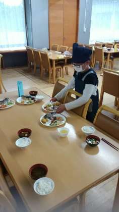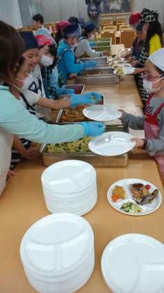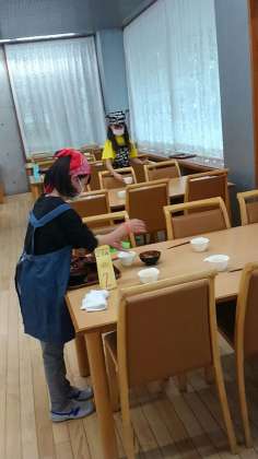 夕食の準備です。2回目の準備菜ので、食事係の動きが、テキパキとしています。