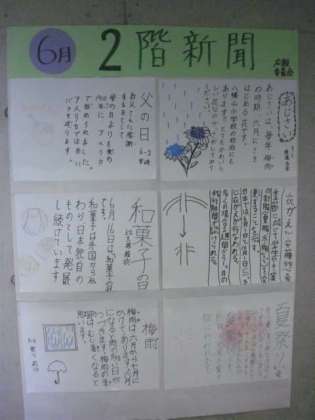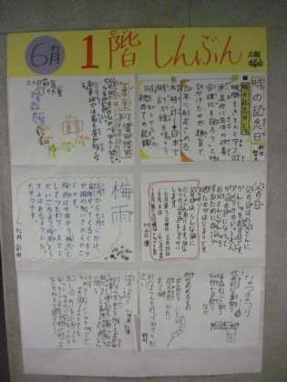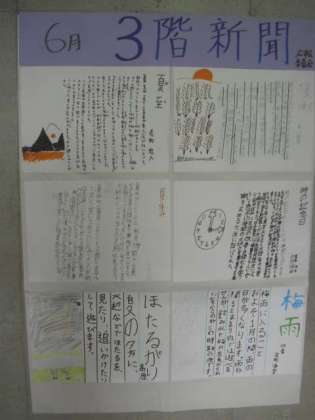 6月に入り、1学期も折り返し地点にさしかかりました。広報委員会作成の6月の新聞が、各フロアに掲示されています。「梅雨」・「夏至」・「ホタル狩り」などといった初夏の話題が紹介されています。夏はもうすぐそこまで来ていることが分かる新聞になっています。ご来校の際に、ぜひご覧になってください。