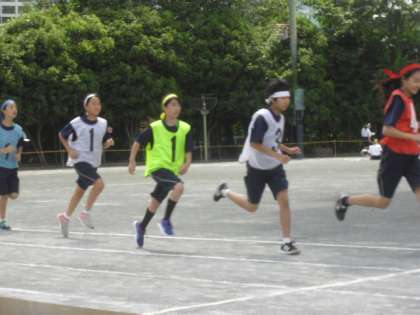 競技が始まりました。八幡山小学校出身の生徒もそれぞれの競技で活躍し、成長した立派な姿を見せてくれました。さすが中学生ともなると迫力が違います。今年3月に卒業した1年生も、とてもたくましくなっていました。