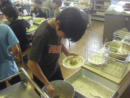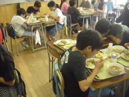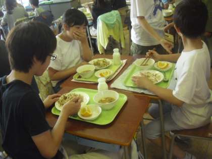 暑くなっても、6年生の食欲は旺盛です。今日の給食、おかわりがたくさん残った6年2組でしたが、ごちそうさまの時間に近づくと、あっという間に片付き、最後は数名の男子で仲よく分け合って、食缶が空になりました。もりもり食べて、午後の勉強もがんばりましょうね。