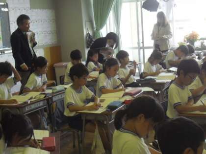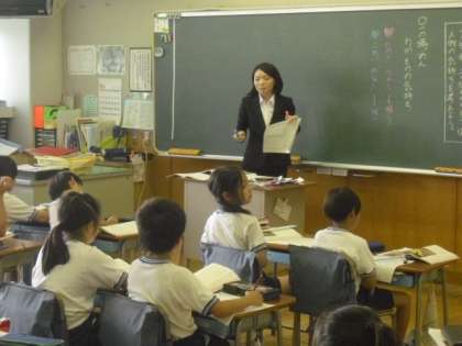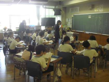 3年1組の教育実習生は、大学の指導教官が参観する中での研究授業を行いました。昨日から国語の単元「うさぎのさいばん」の学習に入っています。今日は、形式段落に分けて、登場人物の気持ちを考えました。全体指示をした後、実習生は個々の子どもたちに声をかけて回ります。課題に戸惑っている子に対しても配慮することができるようになってきました。