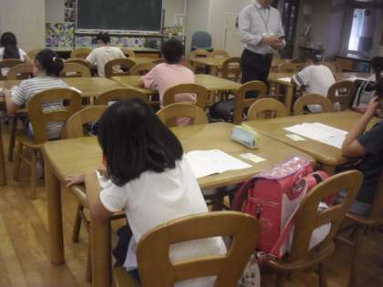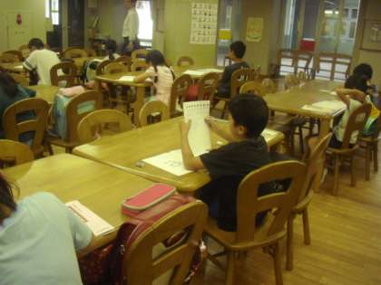 学校運営委員会が主催する、今年度第1回目の日本語検定が、放課後ランチルームで行われました。事前に申し込みをした15名の子どもたちが受検しました。