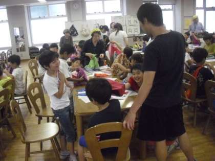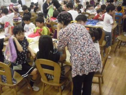 3校時には、3年生でも学年PTA活動が行われました。環境学習の一環として、「ふろしくの包み方」について、ひとえの会環境グループの方々を講師にお迎えしての授業でした。子どもたちには馴染みの薄くなったふろしきの利便性を見直し、環境について関心をもつことがねらいです。使い捨てのビニル袋と違って、何度も繰り返し使えて、多様性のあるふろしきの良さを知り、エコについて考えるきっかけとなる内容でした。講師の皆さん、PTAのお母さん方、ありがとうございました。