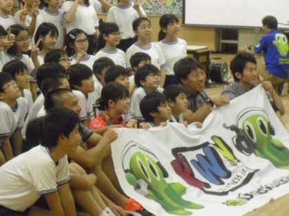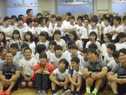 最後に全員で記念撮影をしました。星選手やラグビーチームの方々にも入っていただき、とてもよい思い出になりました。ありがとうございました。