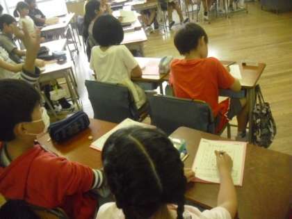 今日は中学年でALTによる外国語活動が行われました。4年生の教室では、アグネス先生が担任の先生とかけ合いをしながらのビンゴゲームで盛り上がっていました。子どもたちは、授業の中での英語にもだいぶ慣れてきていて、課題を楽しむ様子がうかがえました。