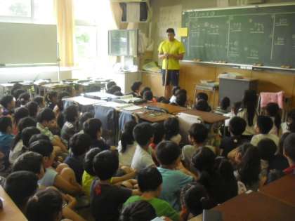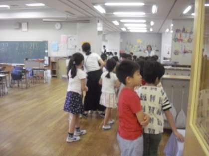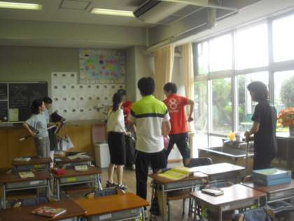 6月の避難訓練は、年に1度実施する、不審者対応の訓練です。2年生の教室に不審な人物が出没したという想定で行いました。児童を適切に誘導し、教職員が協力して不審者役の職員を取り押さえます。職員室では、緊急110番に通報したという設定での動きも確認されました。