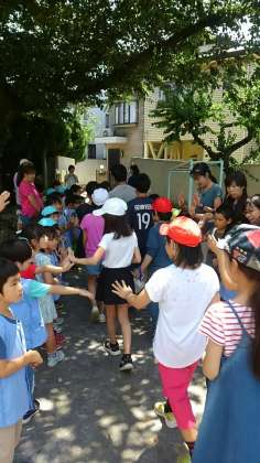 八幡山幼稚園の、年長組と八幡山小の5年生との交流は、あっという間に終了の時間になりました。