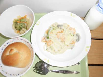 「セサミパン、シシリアン、イタリアンサラダ、牛乳」です。