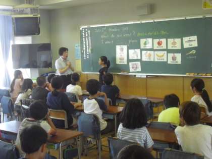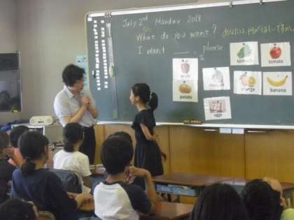 今日は、5年生で英語の授業が行われました。英語によるいくつもの質問に対するやりとりを、実践を通して学びます。支援員の野本先生と代表児童とのやりとりを確認して、実際に子どもたち同士で練習しました。実践を通して、子どもたちの中に、どんどん英語を使ってみようという意識が芽生えているようです。