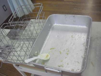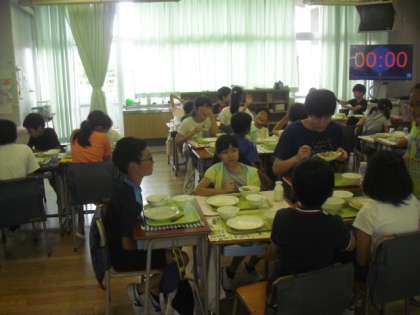 暑い日が続いています。それに伴って、少し子どもたちの食欲が落ちてきていますが、4年生は食欲旺盛です。今日もご飯の食缶は空っぽでした。もりもり食べて、この暑さに負けない体力をつけていきましょうね。