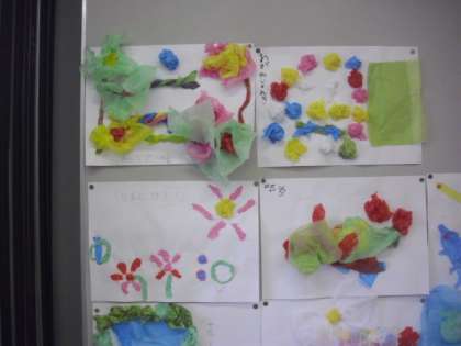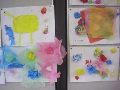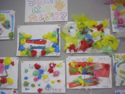 おはな紙を丸めたり、ちぎったりして表現した作品です。