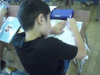 2組の4時間目は、道徳の授業です。「ちゃんとつかえたのに」の話をみんなで読んで、それぞれが考えたことをワークシートにまとめます。自分の体験を振り返りながら、授業の中で感じたことを発表し合い、自分の考えを深めていました。