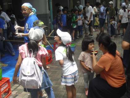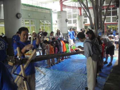 1時間が過ぎましたが、まだまだ会場は賑わっています。そうめんやスイカもまだ残っています。1時までの予定ですので、まだの方は急いでご来校ください!